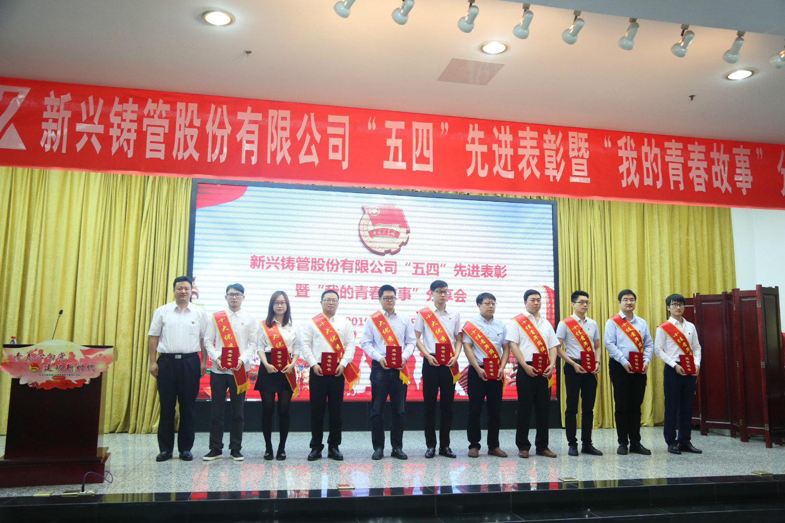 當(dāng)時上午,大會由百余名青年團員齊唱團歌拉開了序幕,與會人員集體觀看了五四運動紀錄片。隨后表彰大會正式開始,首先通報表彰了“公司十大杰出青年”“十佳青年崗位能手”“十佳優(yōu)秀團干部”“十佳優(yōu)秀共青團員”和“十佳紅旗團組織”名單,公司領(lǐng)導(dǎo)為上述受表彰的集體和個人進行了頒獎。