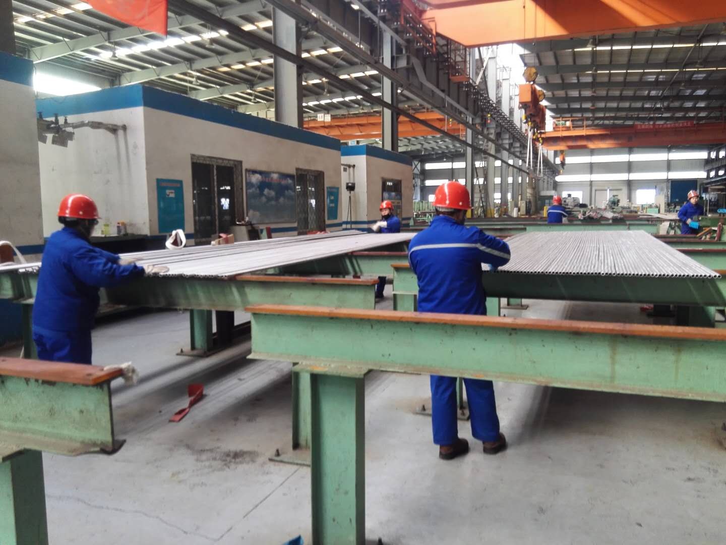 沿著參觀路線,我們來到檢驗人員休息室,推門進去居然一個人都沒有,我們又來到檢驗平臺,三位女員工整站在操作平臺上雙手滾動著管子,專心的觀察著每支管子的表面。我們了解到,這位女員工叫安曉芹,是我們檢驗班的班長,車間無論大小管最終都要在她們手中把關,外徑尺寸、壁厚尺寸,彎曲度、內(nèi)外表面質(zhì)量是她們的日常工作,接料、吊運、分檢同樣也是她們要面對的每一項任務。她驕傲的說:“沒有男同胞,我們的女同胞照樣干的紅紅火火,現(xiàn)在我們檢驗班只分‘女漢子’和‘男超人’。”我們以前也只是聽旁人提起過,今天算是開眼界了。了解完工作情況,聊起生活情況我們才知道,春節(jié)期間她一天也沒有休息,就這樣每天往返在公司和回家的路上。她說:“不只有節(jié)日休息是幸福,下班回家也是一種幸福,我的新年愿望就是全家幸福,工作順利,我的兒子可以健健康康!”軍鋼精神在哪里?軍鋼精神就在這里,在忙碌的工人身上、在樸實的話語之中、在以廠為家的情懷上!